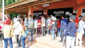 Cambodian migrants to work in Thailand through Poi Pet border recently. Photo: Heng Chivoan.